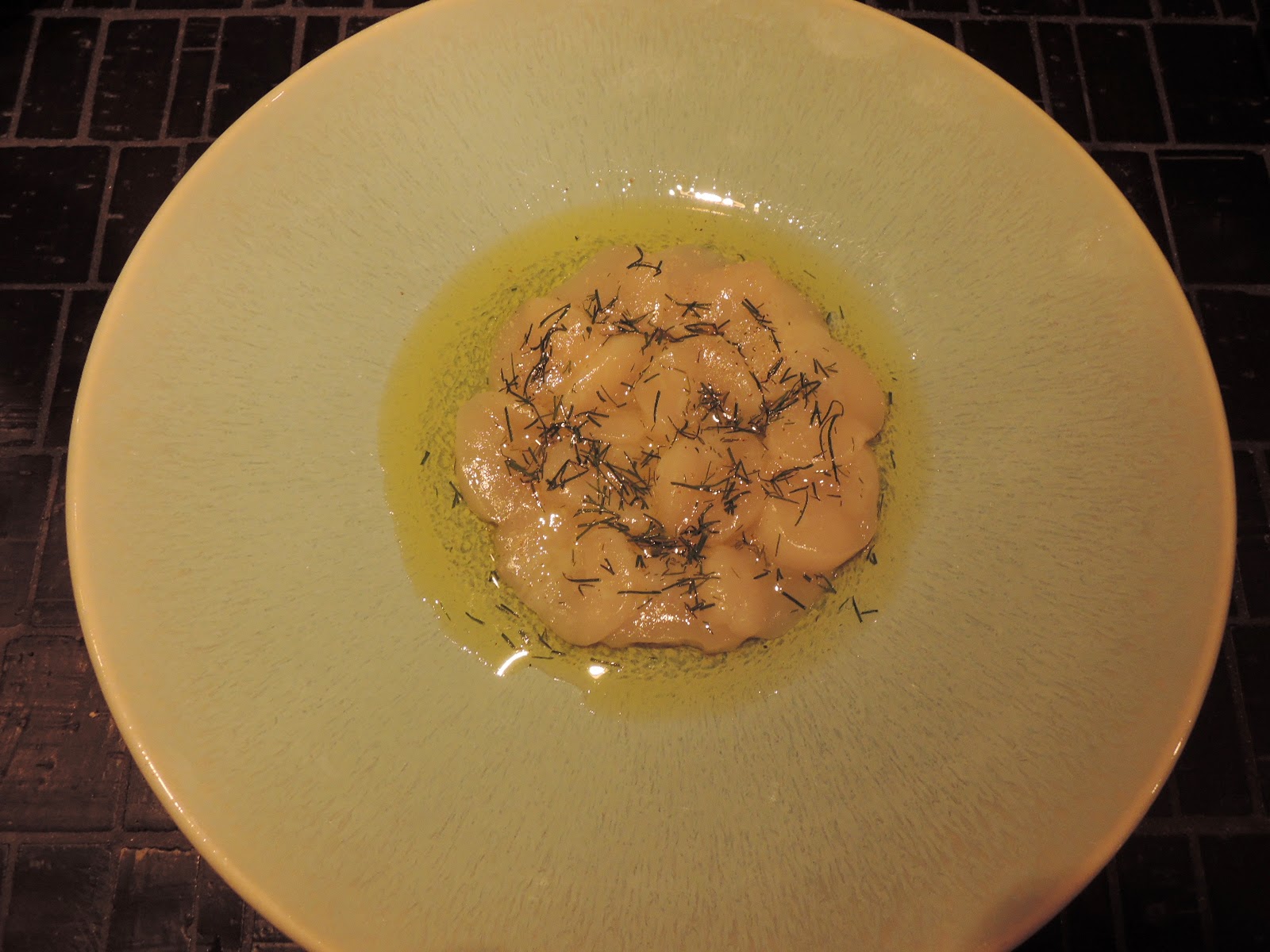 Normaal gezien stond dit gerecht met schelvis op de kaart. Deze was op en werd vervangen door een ander stukje vis uit onze Noordzee. Een heerlijk compositie tussen vis en vlees.