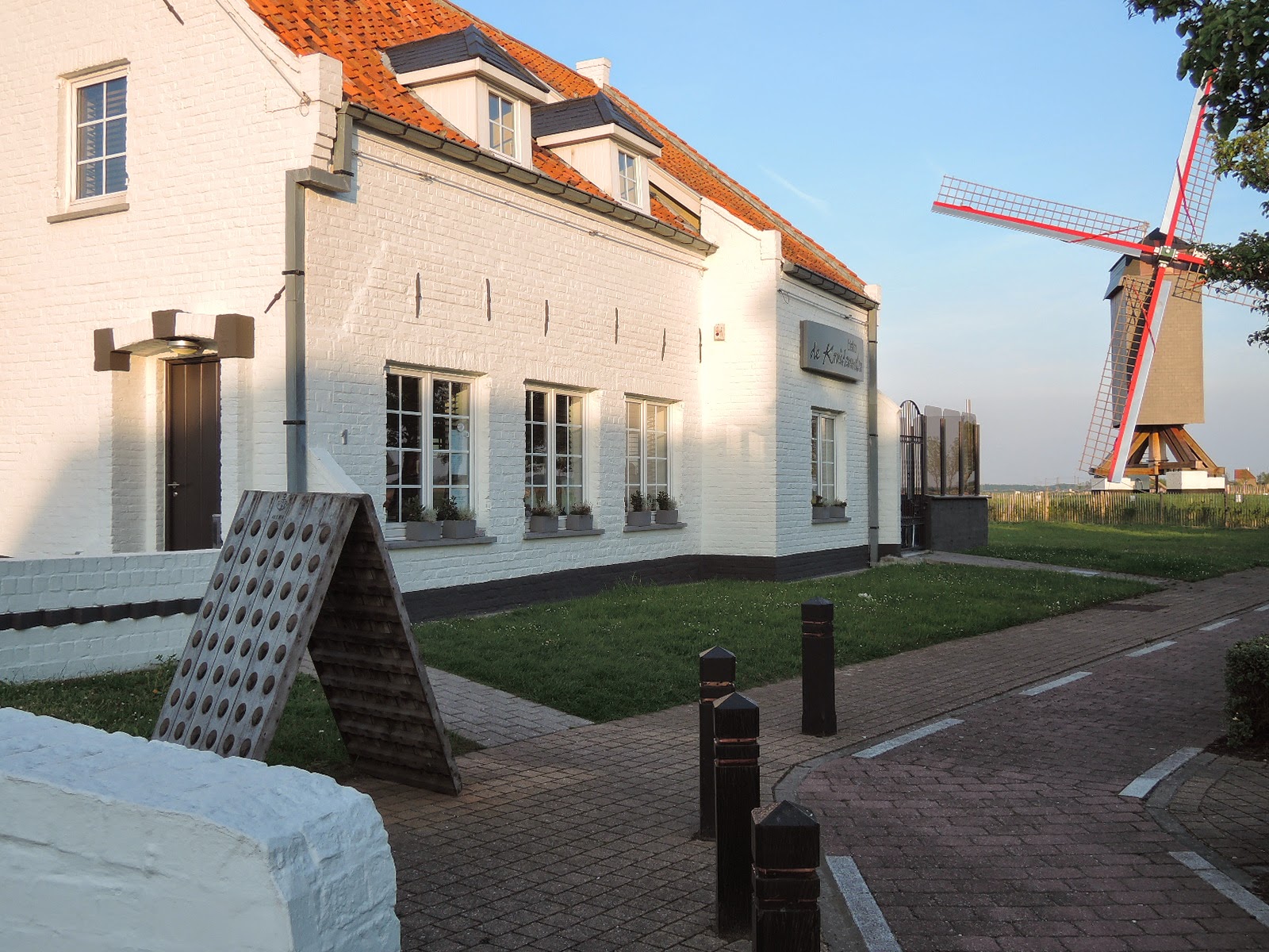 De kruidenmolen werd in Mei 2013 omgebouwd tot een prachtige kust-bistro. Dit volgens de signatuur van Lieven Musschoot. Strakke elementen, gekleurde zeteltjes en een centrale vuurcassette. Vanaf het binnenkomen voelden we ons helemaal thuis in deze bruisende zaak met uitzicht op de omliggende polders.