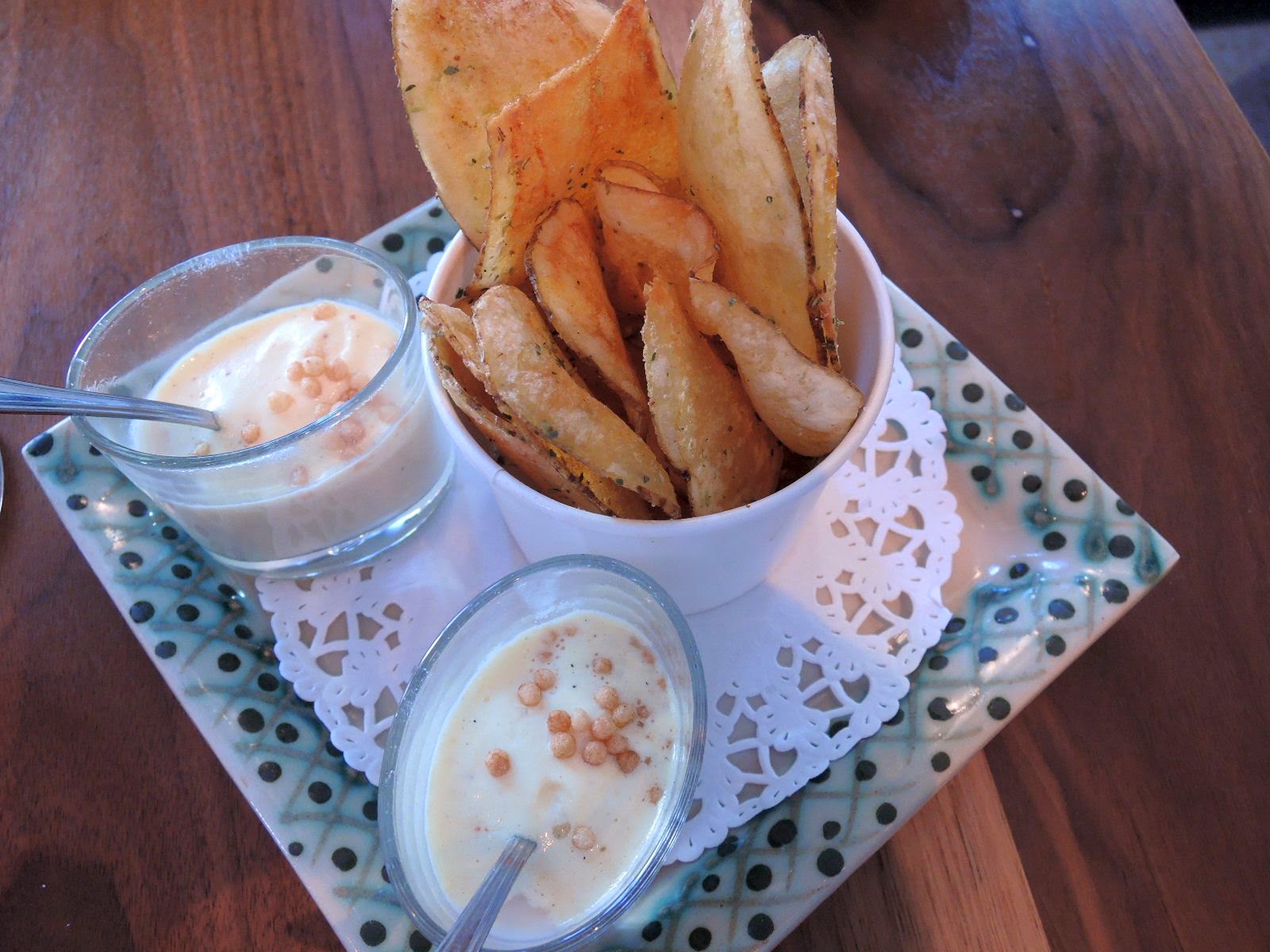Als amuse werd er een soepje van asperge met schuim van mierikswortel en verse chips gebracht