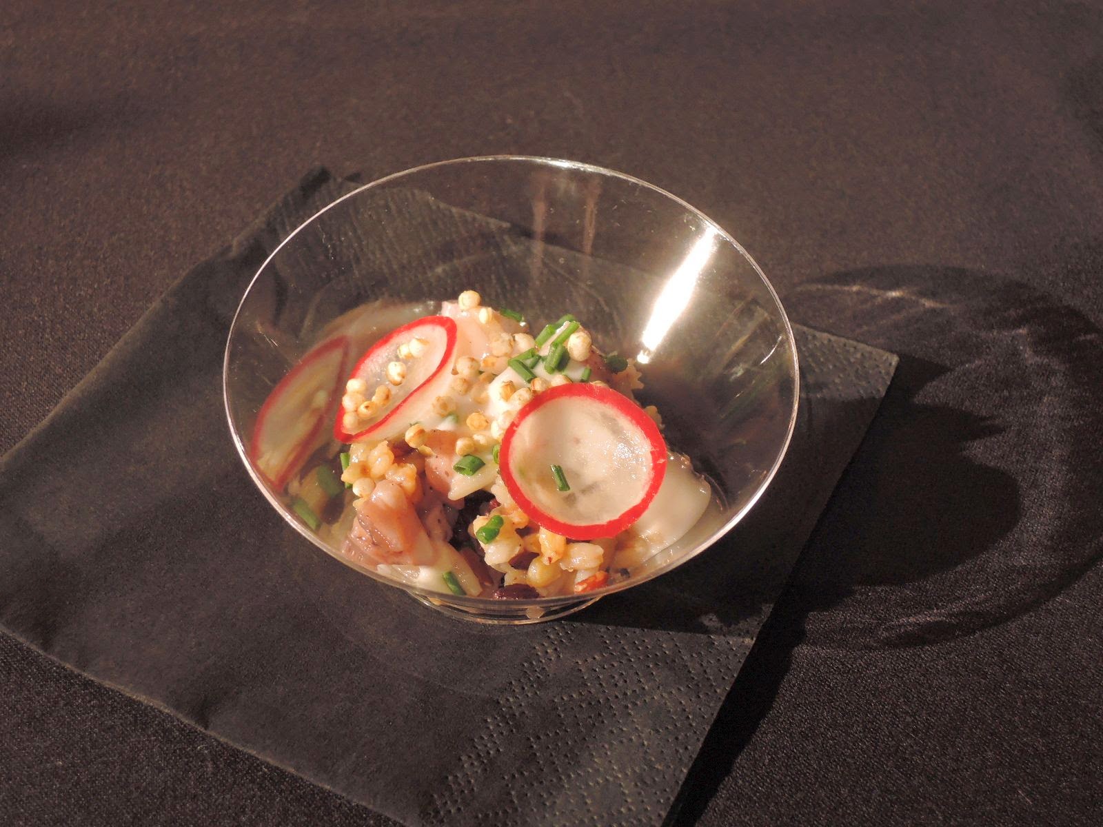 Een knappe line-up van topchefs zorgde op de openingsavond voor 2 menu’s. We hadden dan ook het geluk beide menu’s te kunnen proeven. Al deze gerechten werden voorzien van een glaasje aangepaste wijn of bier. Verder kan je terecht op de Foodiesquare voor verschillende gastronomische workshops gegeven door binnen en buitenlandse topchefs.