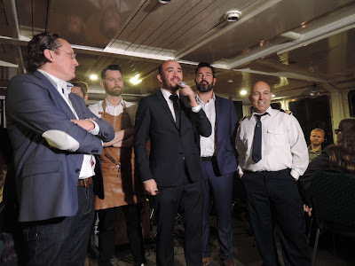 Het dessert was de topper van de avond, Roomijs van gezouten karamel met warme chocolade mousse en crumble van cacao. Kenny, dat receptje wil ik wel !! De keuken op een boot is natuurlijk veel beperkter al in een restaurant. Toch proberen ze hier op een creatieve manier mee om te gaan.