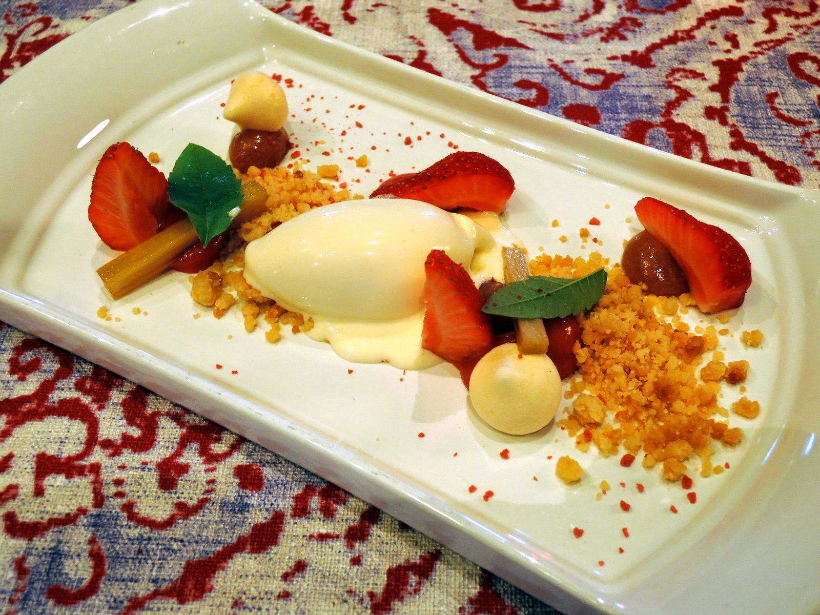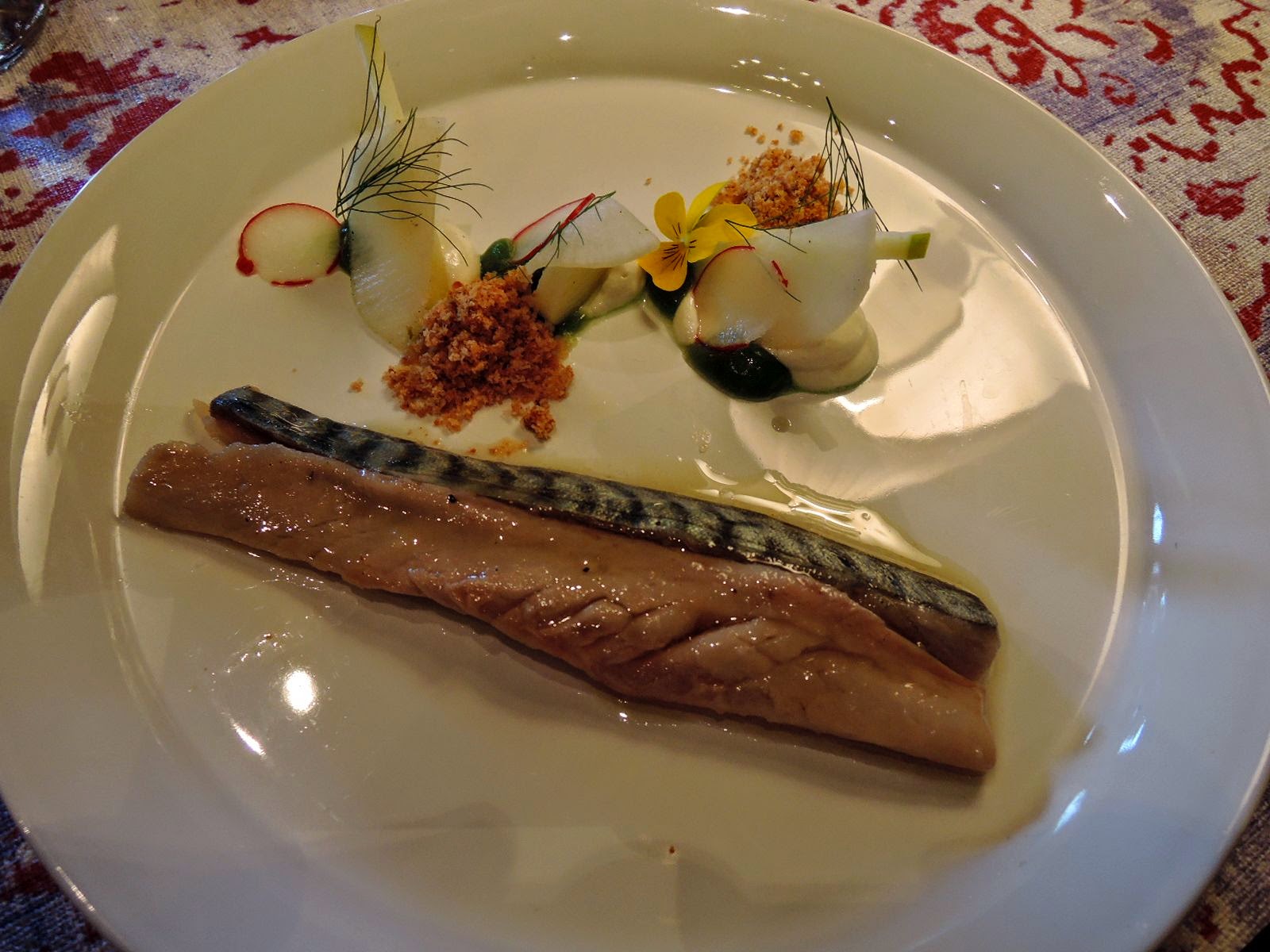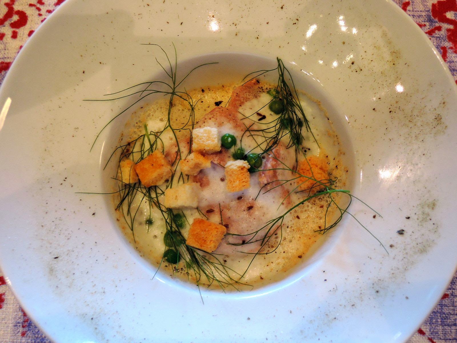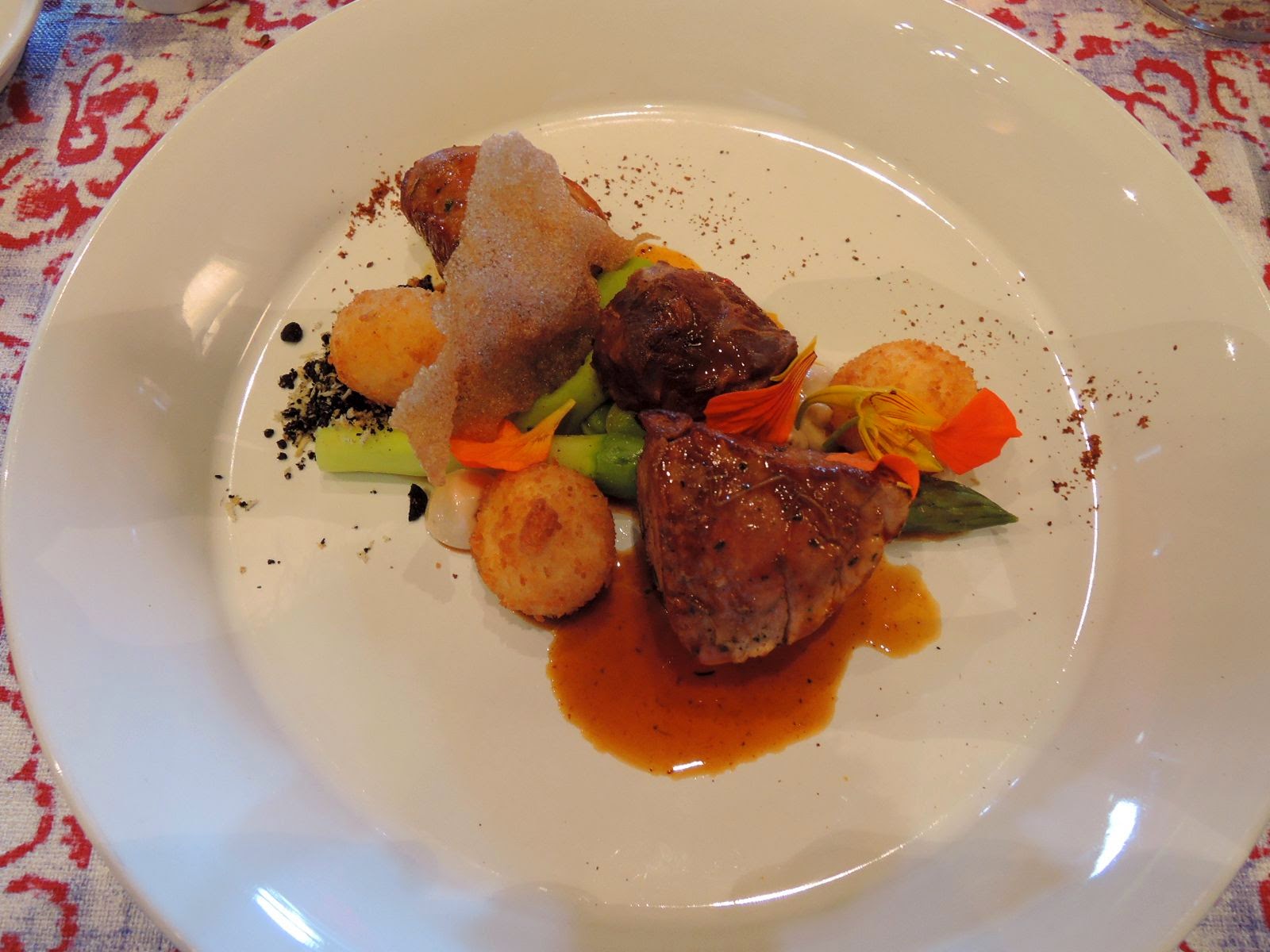 Een heerlijk bordje met perfect gebakken smakelijk varkensvlees en een heerlijk stukje varkenswang. Toch zou men hier 1 of 2 ingrediënten mogen weglaten op het bord. Het waren net iets te veel smaken op 1 bord. De crumble van olijf had dan ook geen meerwaarde bij dit gerecht.