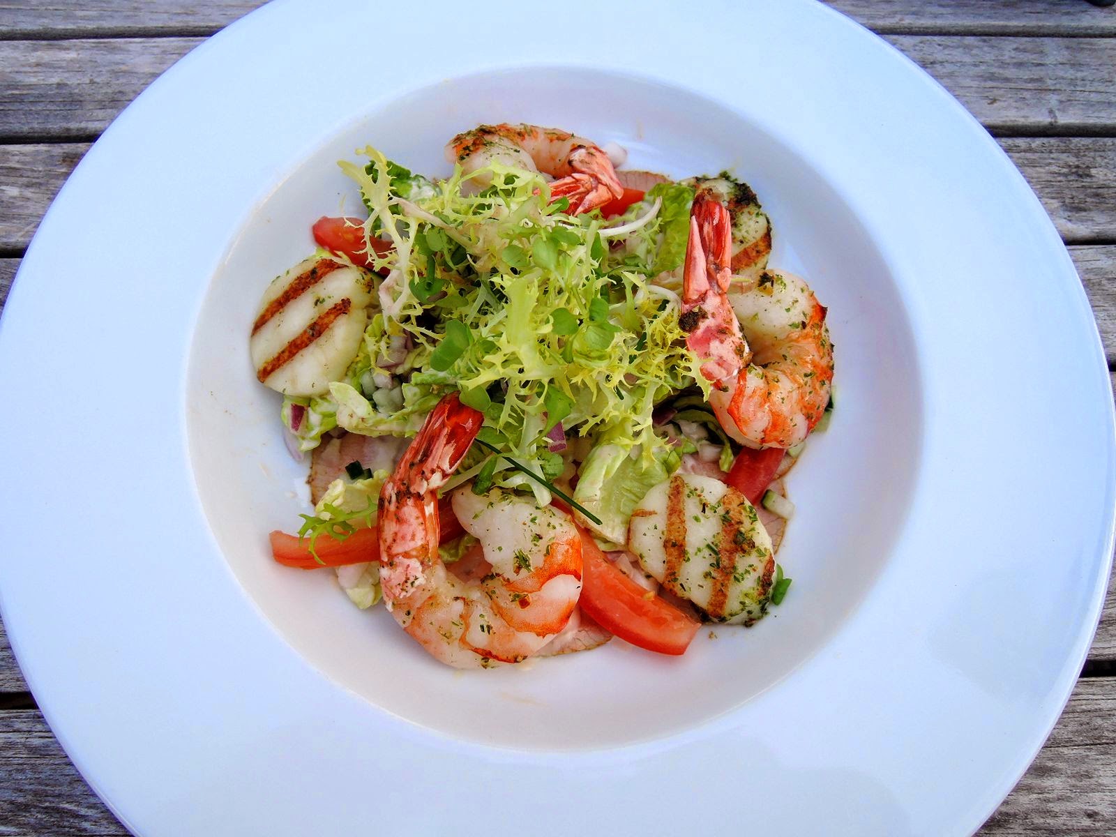 De naam Vesper staat voor het uur dat de zon ondergaat, de hemel violet kleurt en de sterren zich laten zien. Bij Vesper beleeft u dit moment op bijzondere wijze, vanaf uw eigen balkonterras dat uitkijkt over zee, met uw voeten in het zand of vanuit de lobby met een cocktail in de hand. Wij genoten van dit moment in het restaurant “Het Zuiderbad”, recht tegenover het hotel. We kregen een prachtig plekje aan de raam met zicht op de duinen, het strand en de zee. Optimaal genieten. Tijdens dit onvergetelijke etentje genoten we van een heerlijke flesje “Pouilly Fumé van Domaine Bailly”.