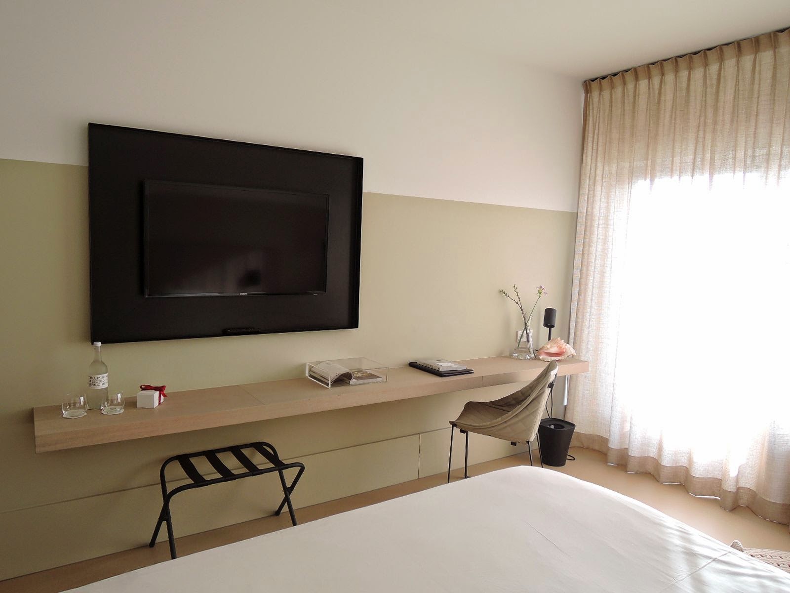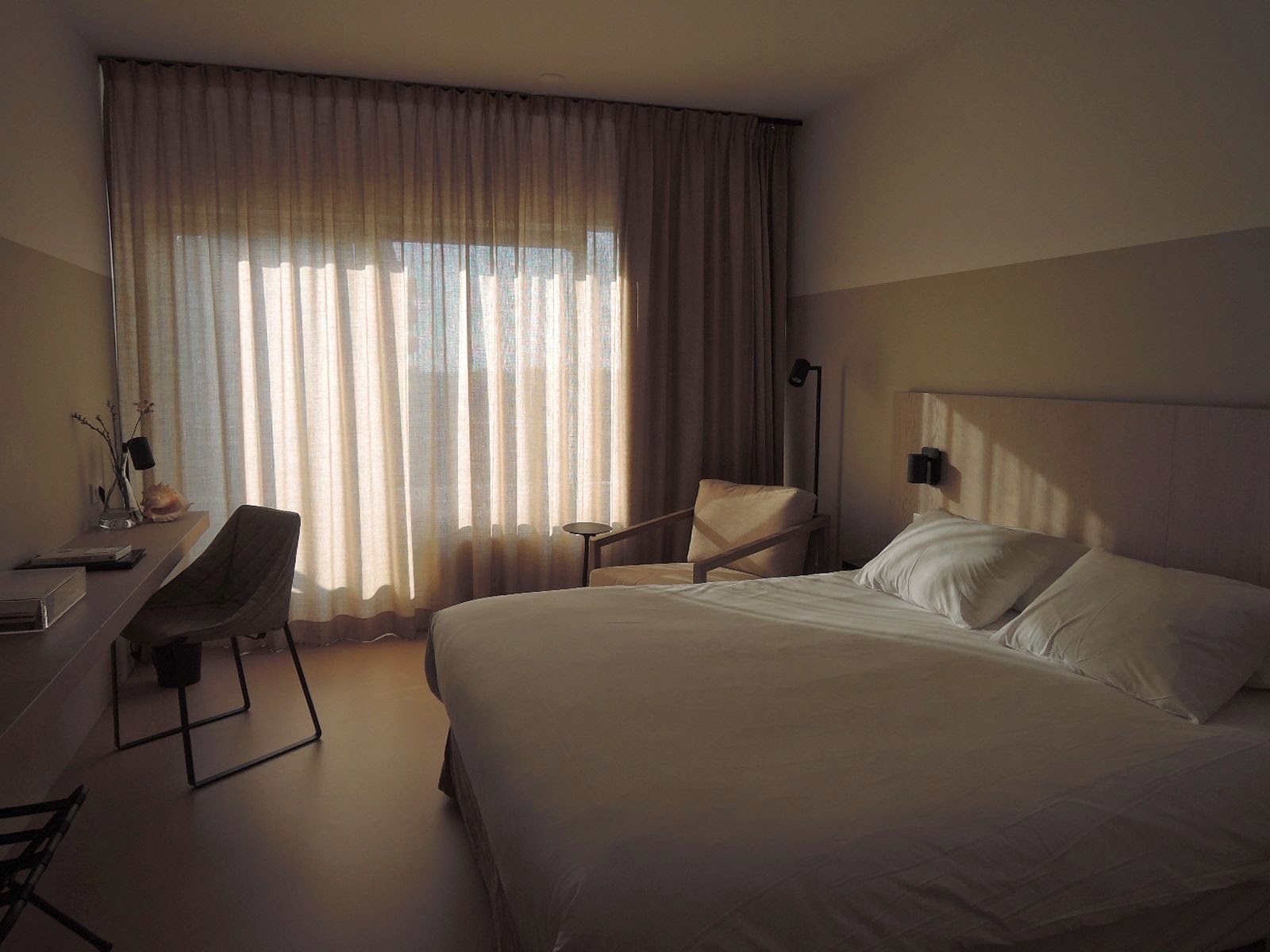 Na een uitzonderlijk diner met verschillende topwijnen en een digestief zijn we heel blij dat we een kamer hadden geboekt in Het Strandhotel. Wij sliepen in een Deluxe kamer ingericht door Piet Boon.
