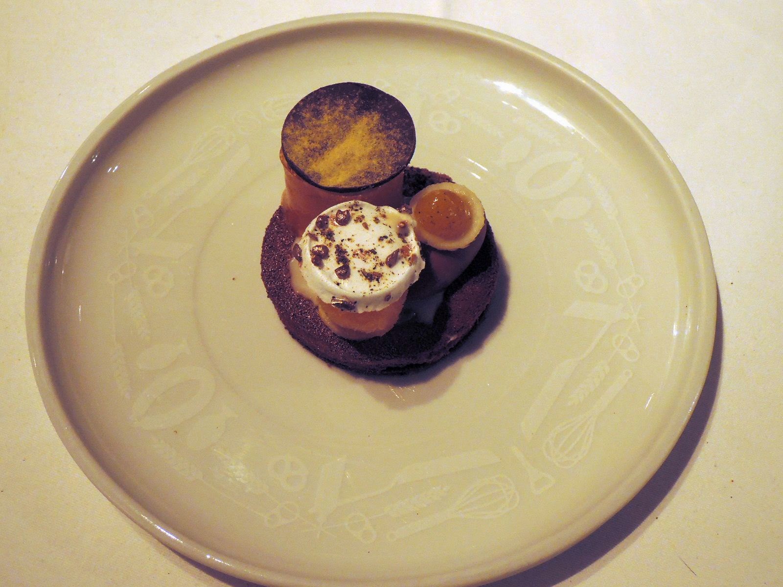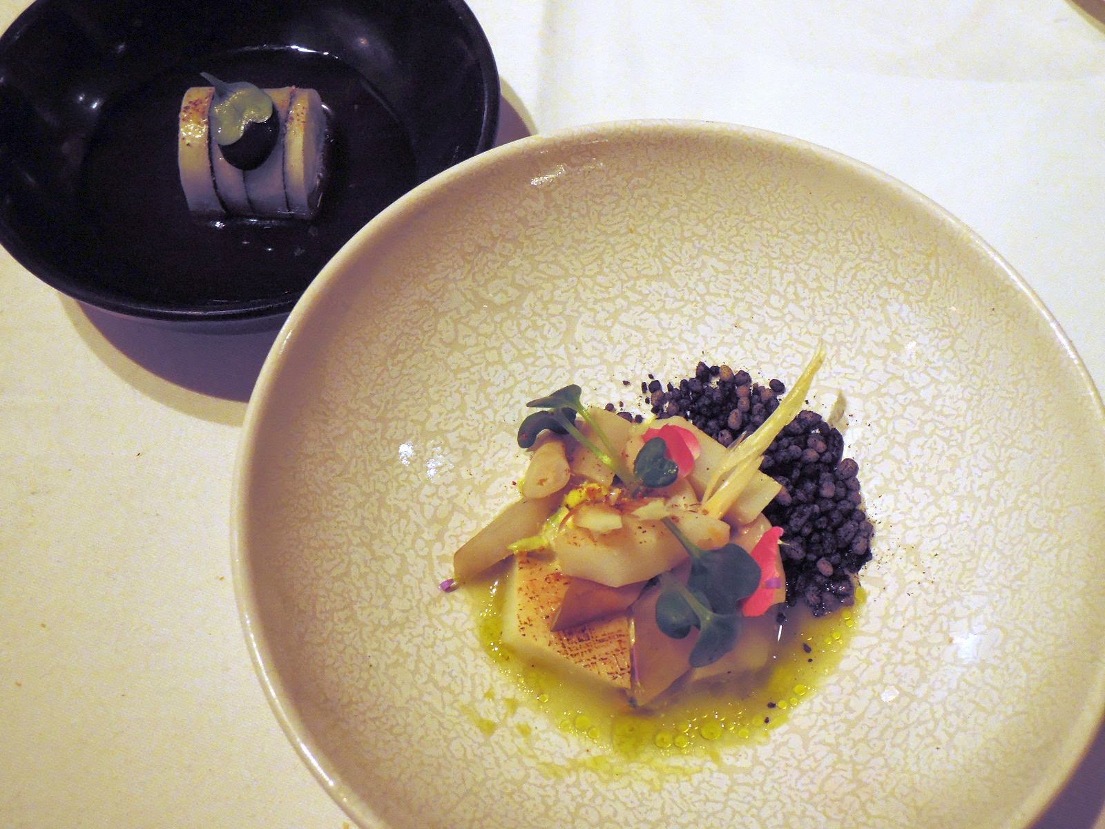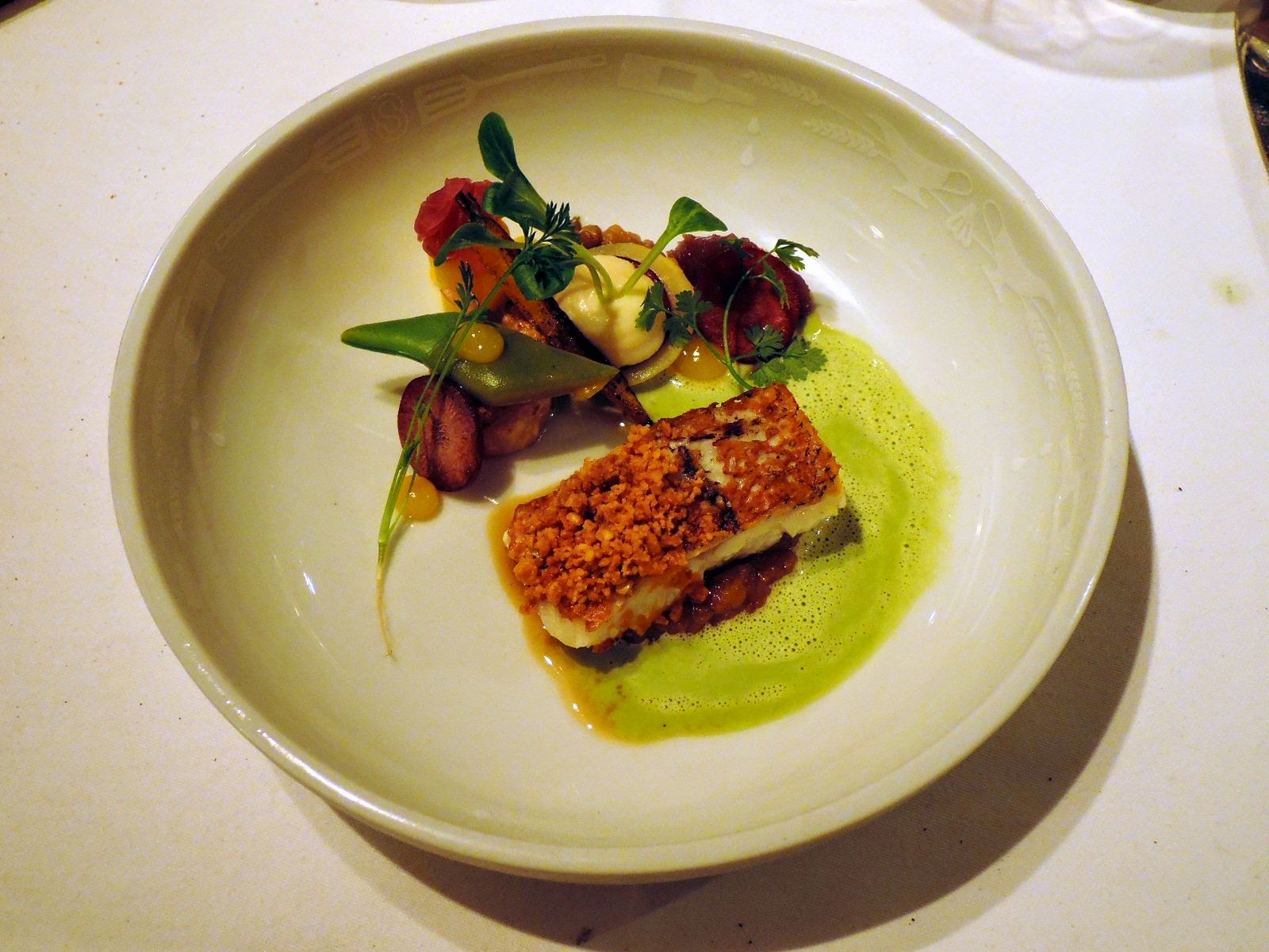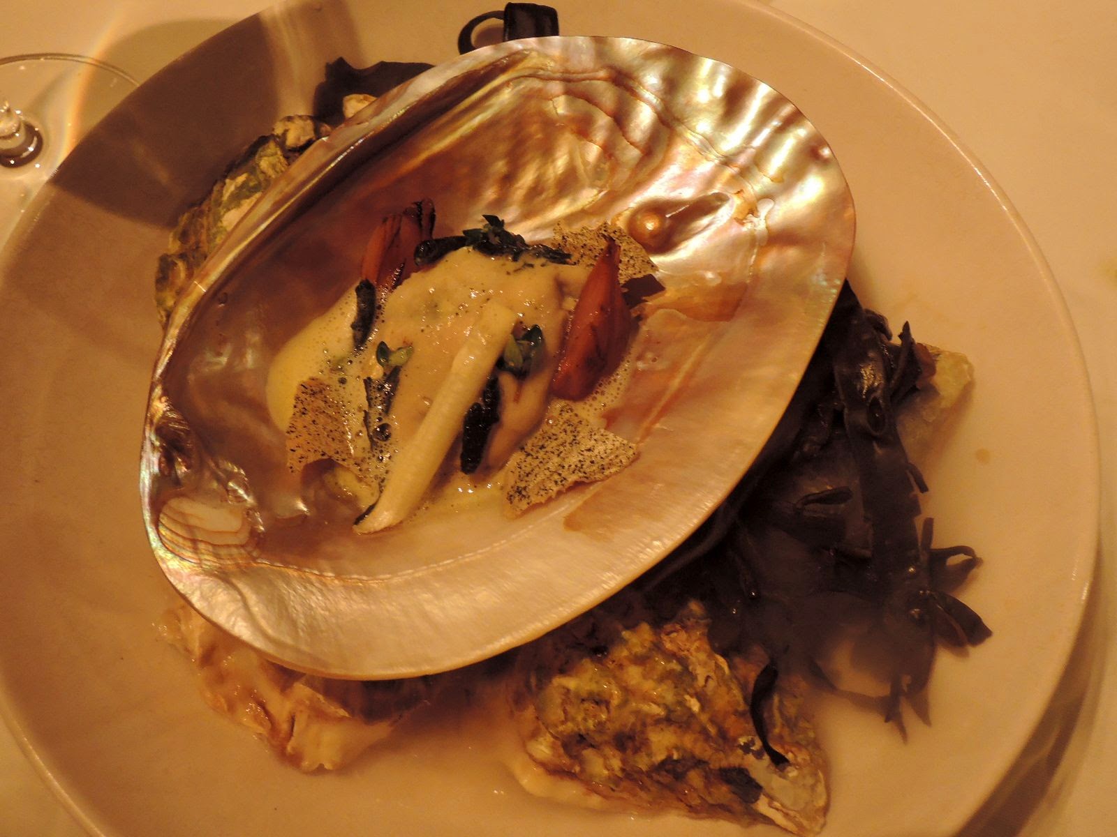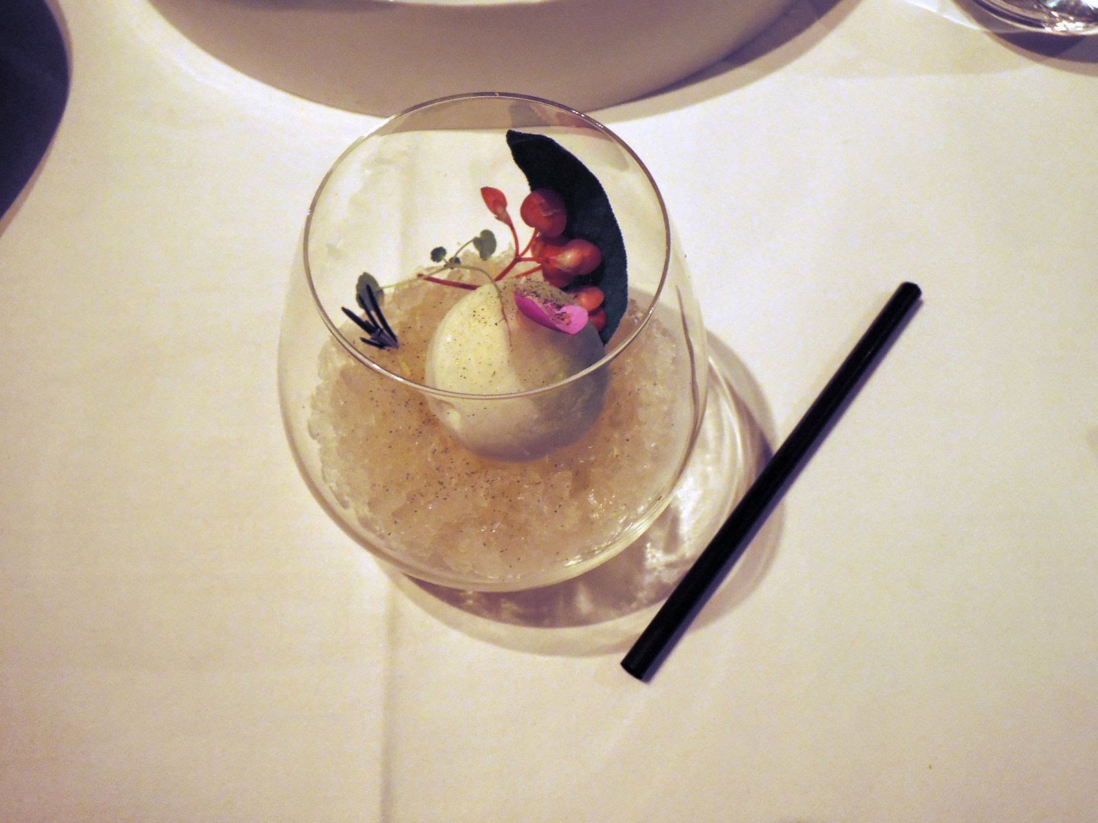 In ons arrangement was een 7-gangen diner inbegrepen. Na 5 gerechten op basis van vis en zeevruchten waren we heel blij dat we gekozen hadden om deze 8 ste gang er optioneel bij te nemen. Deze creatie rond kalfsvlees was een culinair schouwspel dat we zeker niet wilden missen. Ook dat glaasje rode wijn smaakte heerlijk na 5 verschillende witte wijnen.