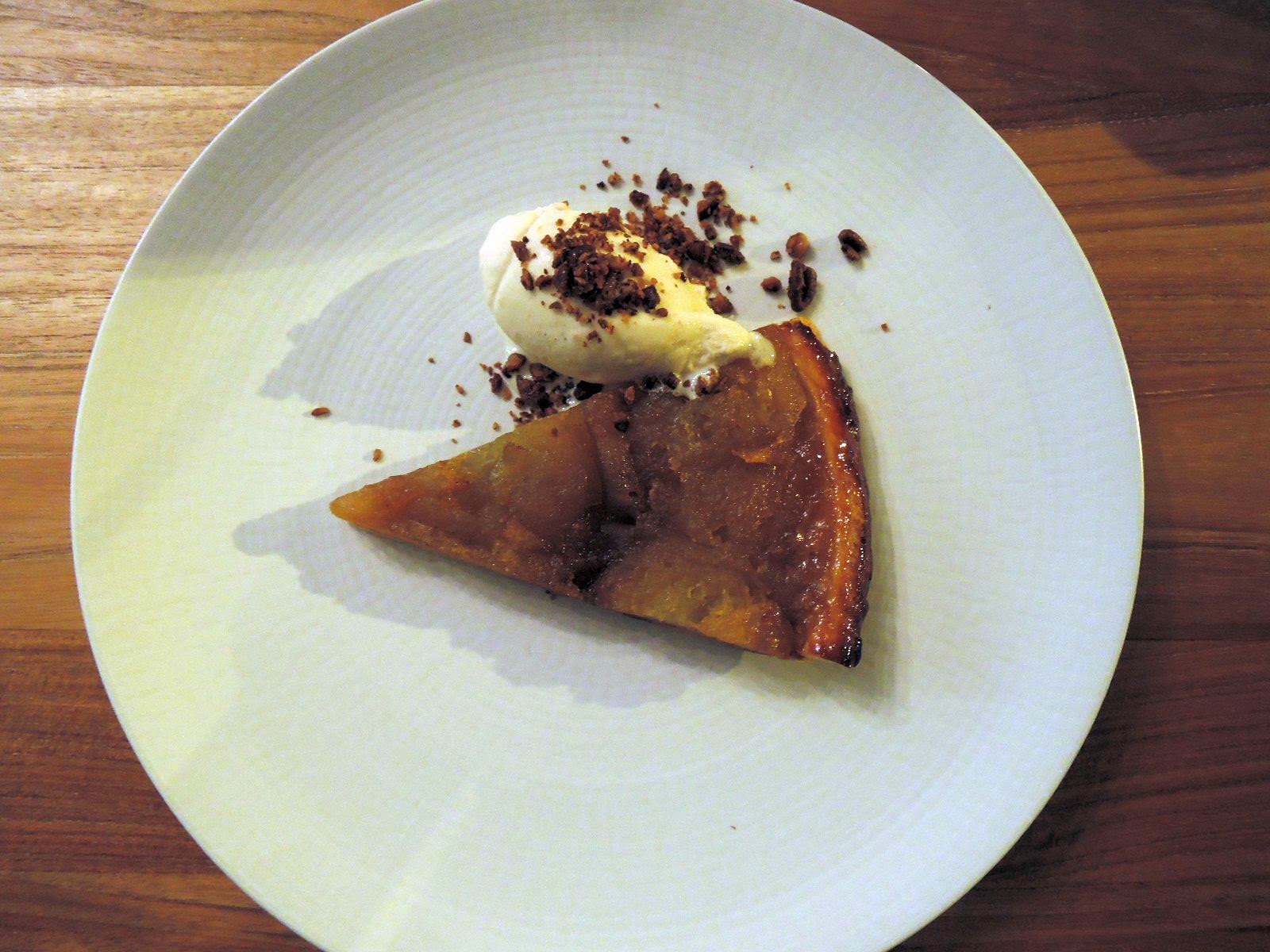 Tarte tatin van Kempische appel, crumble van geroosterde pecannoten