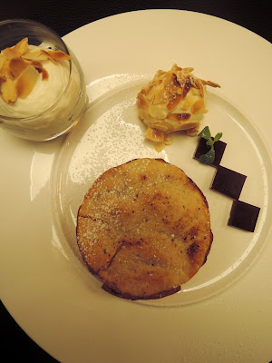 Voor mij was het twijfelen tussen twee klassieke desserts crème brûlée of Tarte Tatin. Ik kan het niet laten om de Tarte Tatin te bestellen. Iets wat ik dringend moet afleren want een kokante bodem van bladerdeeg, smaakvolle appels en smeuïge karamel kom je nog maar weinig tegen. Ook hier werden de verwachtingen niet ingelost. Deze keer meer geluk aan de overkant met een Sabayone van Chouffe koffie met melkroomijs