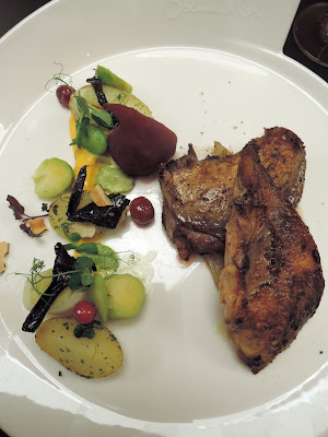 Voor mij een stukje geroosterde fazantenborst op Brabantse wijze. De fazant was veel te droog gebakken, maar de smaak en bijpassende garnituren op het bord waren wel oké.