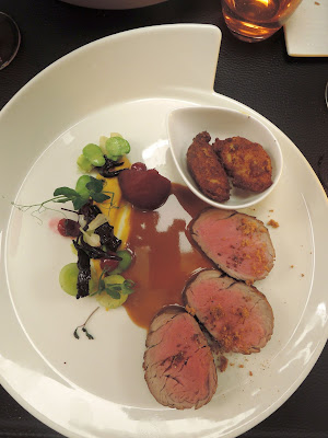 De menu Orange zag er heel verleidelijk uit, maar toch kozen we ervoor om á la carte te eten. Ik kan er gewoon niet aan weerstaan als er zwezerik op de kaart staat. Deze werden geserveerd met gebakken paddenstoelen, veenbessen en een roomsaus van porto.