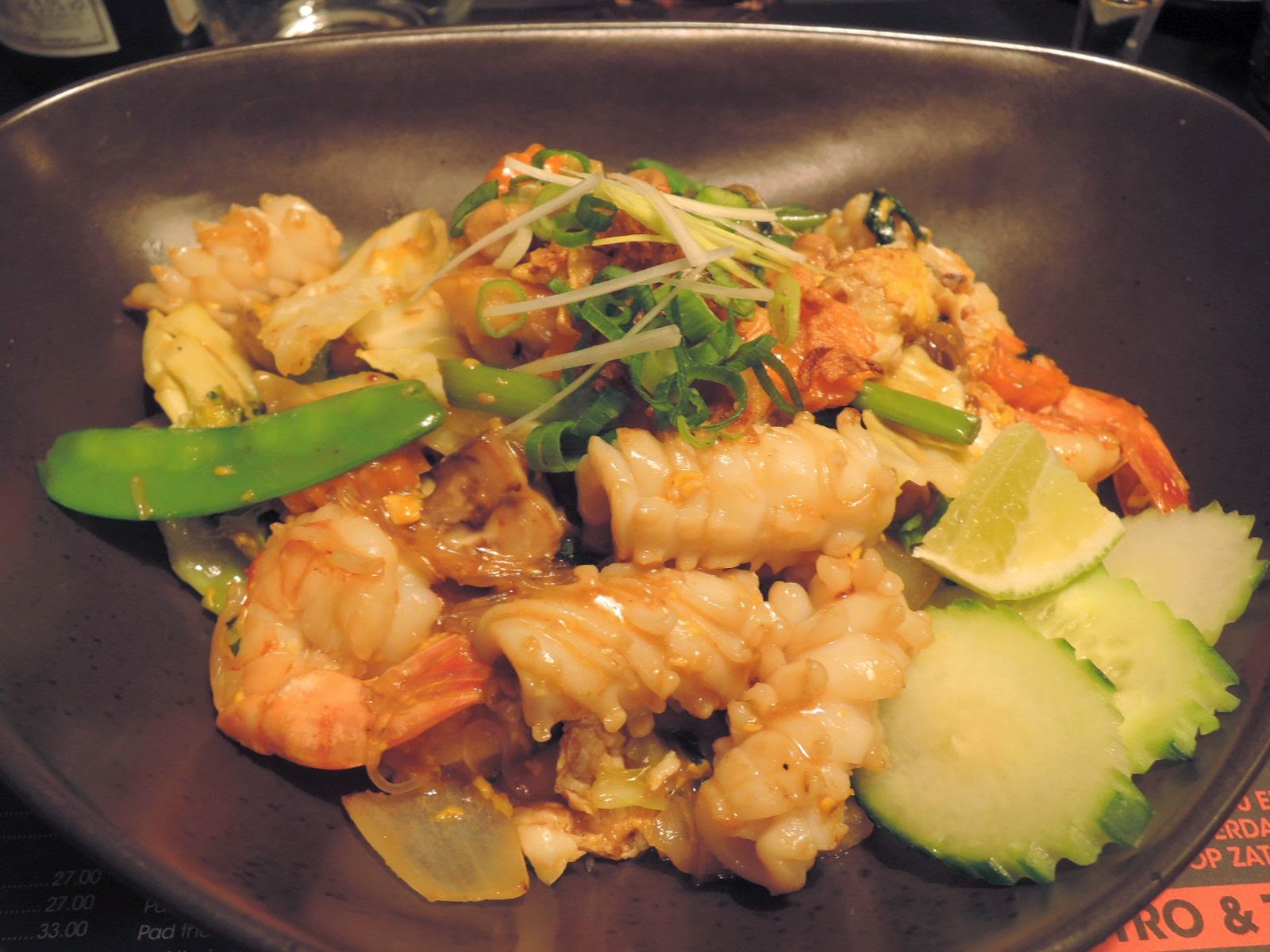 Om te beginnen kiezen we voor een bordje Tempura van inktvis, scampi & ui geserveerd als Fingerfood. In combinatie met een fris Thais biertje missen we enkel de zon nog.