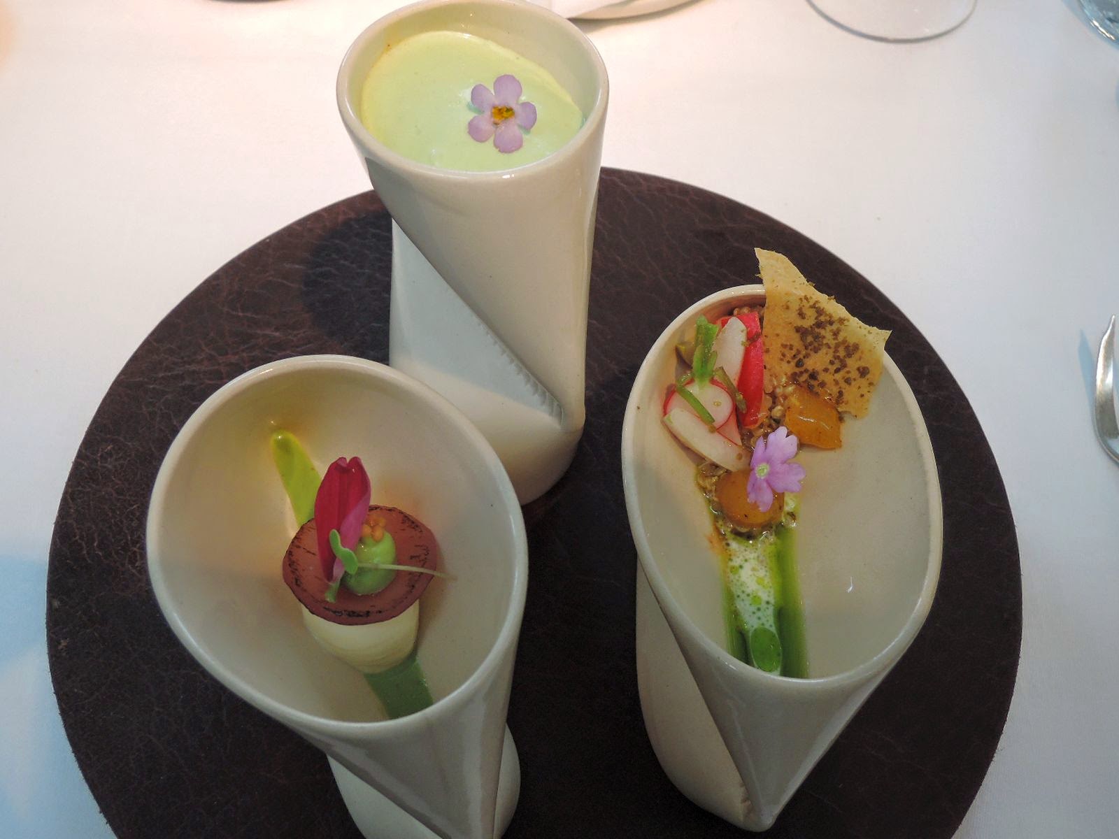 Vervolgens kwam er een bordje met 3 verschillende amuses