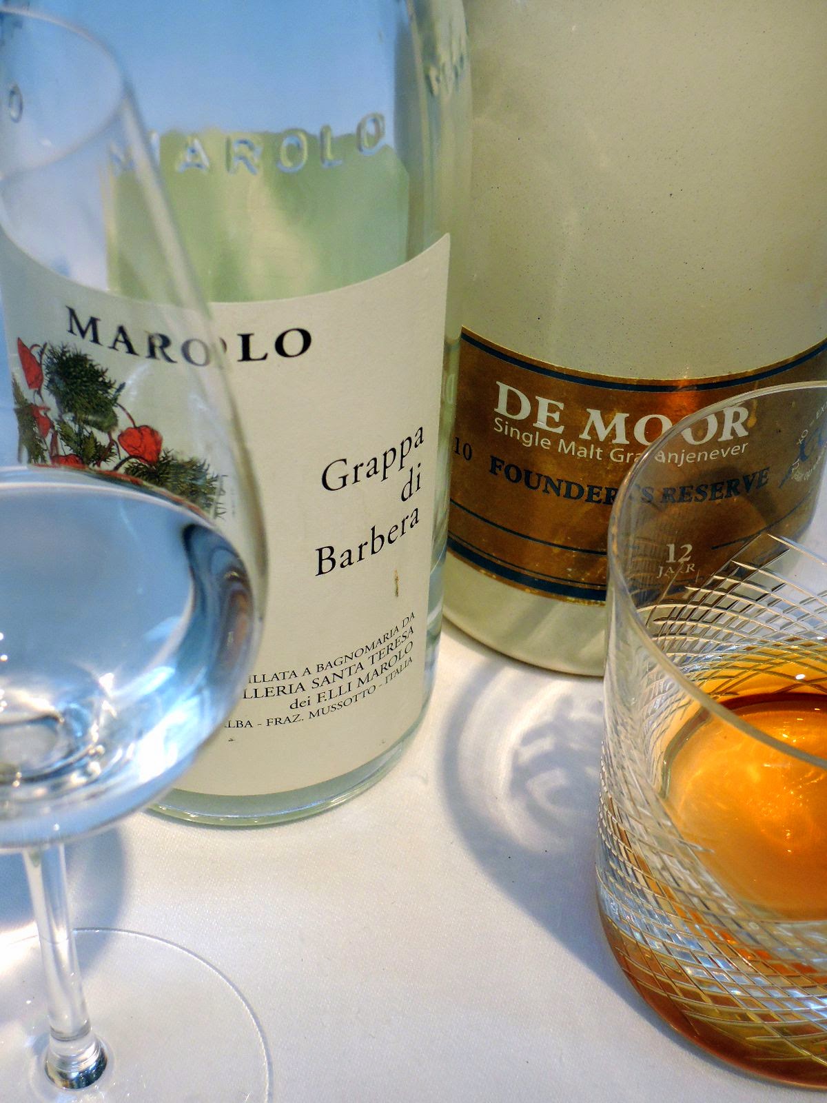 Omdat we dan toch met de trein zijn gekomen en optimaal willen genieten bestellen we nog een Digestief. Aan de ene kant kwam een heerlijke Grappa. De 4 soorten rum & arak op de kaart waren voor mij onbekend. Daarom vroeg ik advies. Ik mocht blind proeven en tot mijn grote verbazing kreeg ik geen rum, maar een verrassend lekker glaasje graanjenever: De Moor – Single Malt.