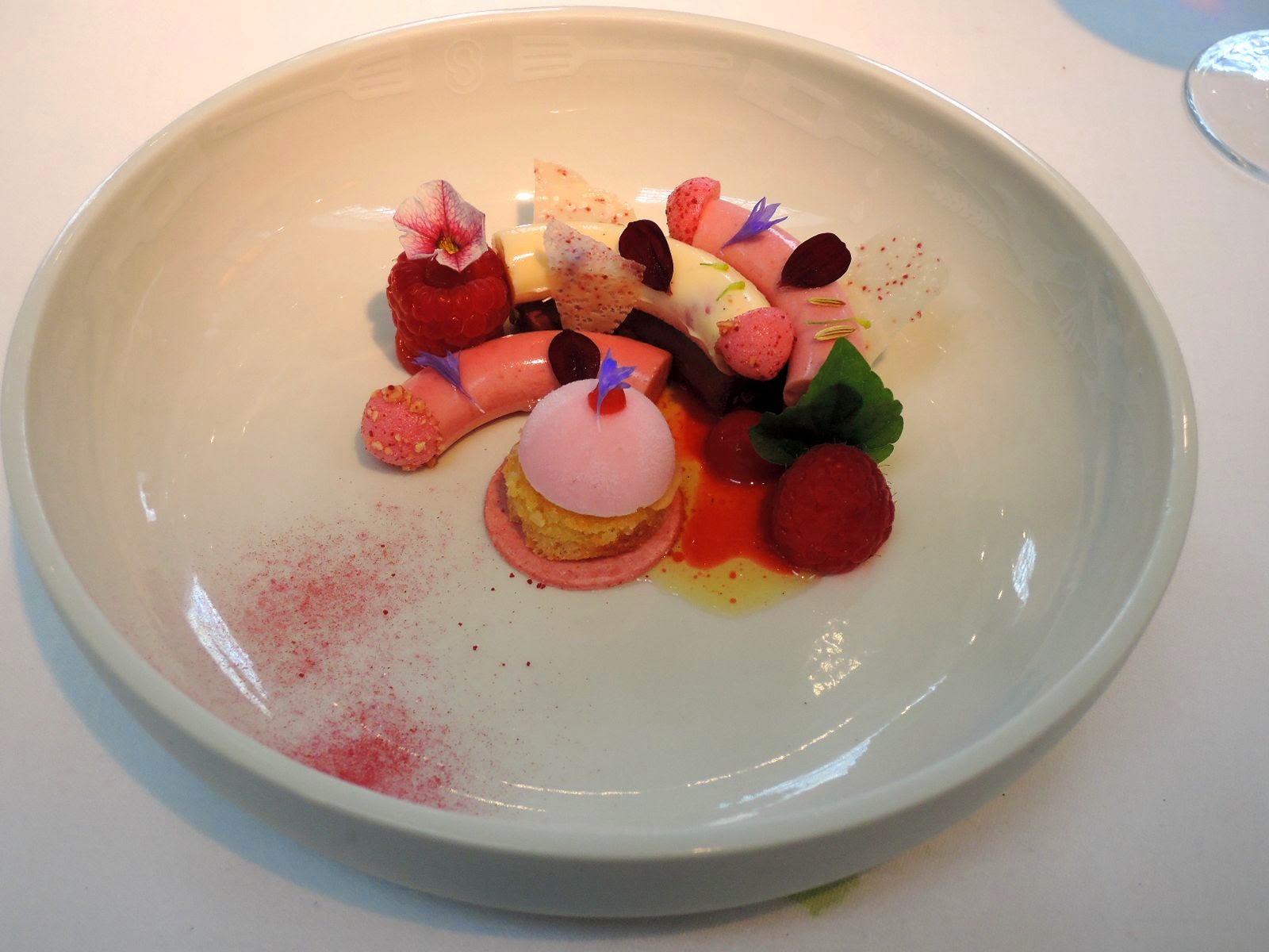 Hoewel in alle gerechten gespeeld werd met verschillende smaken en texturen hadden we van dit dessert meer verwacht. Alle smaken apart waren super, maar we misten de samenhang en textuur in deze creatie.
