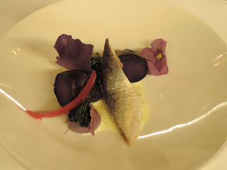 Een menukaart is er echter niet te verkrijgen, Kwinten werkt met slechts 6 bereidingen die afzonderlijk of als menu (Vier gangen • 55 euro / Vijf gangen • 65 euro / Zes gangen • 70 euro) te verkrijgen zijn. Bij elke gang kan je kiezen voor aangepaste wijn of bier. Het gene ik me vooral ga herinneren van ons diner bij Trente is de voorstelling van de wijnen. De Sommelier van dienst gaf telkens een duidelijk voorstelling over de wijn en een reden waarom deze wijn geschonken werd bij dit gerecht.