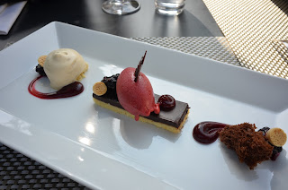 Het dessert bestond uit verschillende smaken en texturen van koffie, chocolade en bramen. Een mooie en vooral lekkere combinatie.